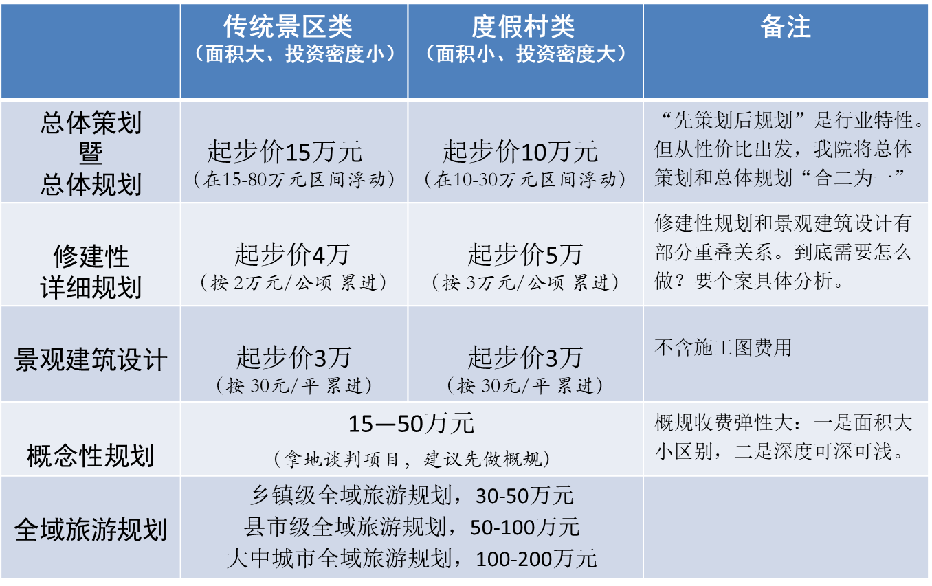 首先必須說明,旅游規(guī)劃收費并無所謂的“標準價格”,但很多客戶還是表示希望“知根知底”,所以至道規(guī)劃院就結合多年經(jīng)驗及行業(yè)...